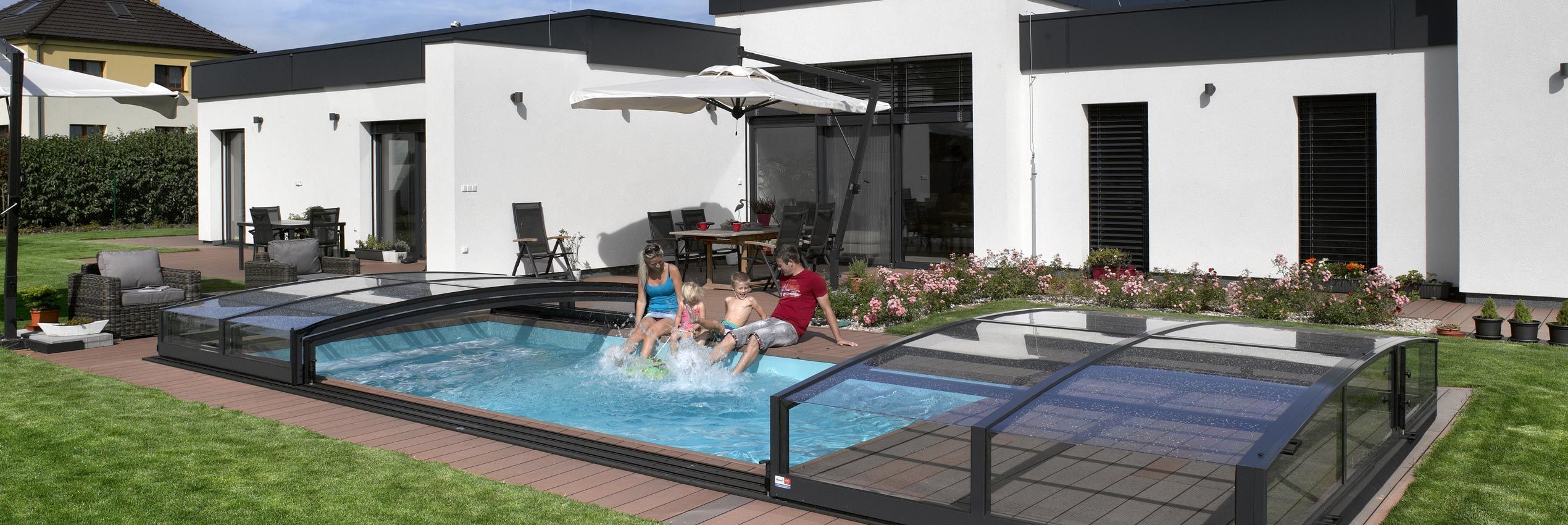 在任何天氣下使用您的露臺(tái)或游泳池,在天氣炎熱的時(shí)候,可以打開移動(dòng)泳池蓋。寒冷和雨水的侵襲時(shí)可以關(guān)閉它,以保護(hù)自己免受影響。
